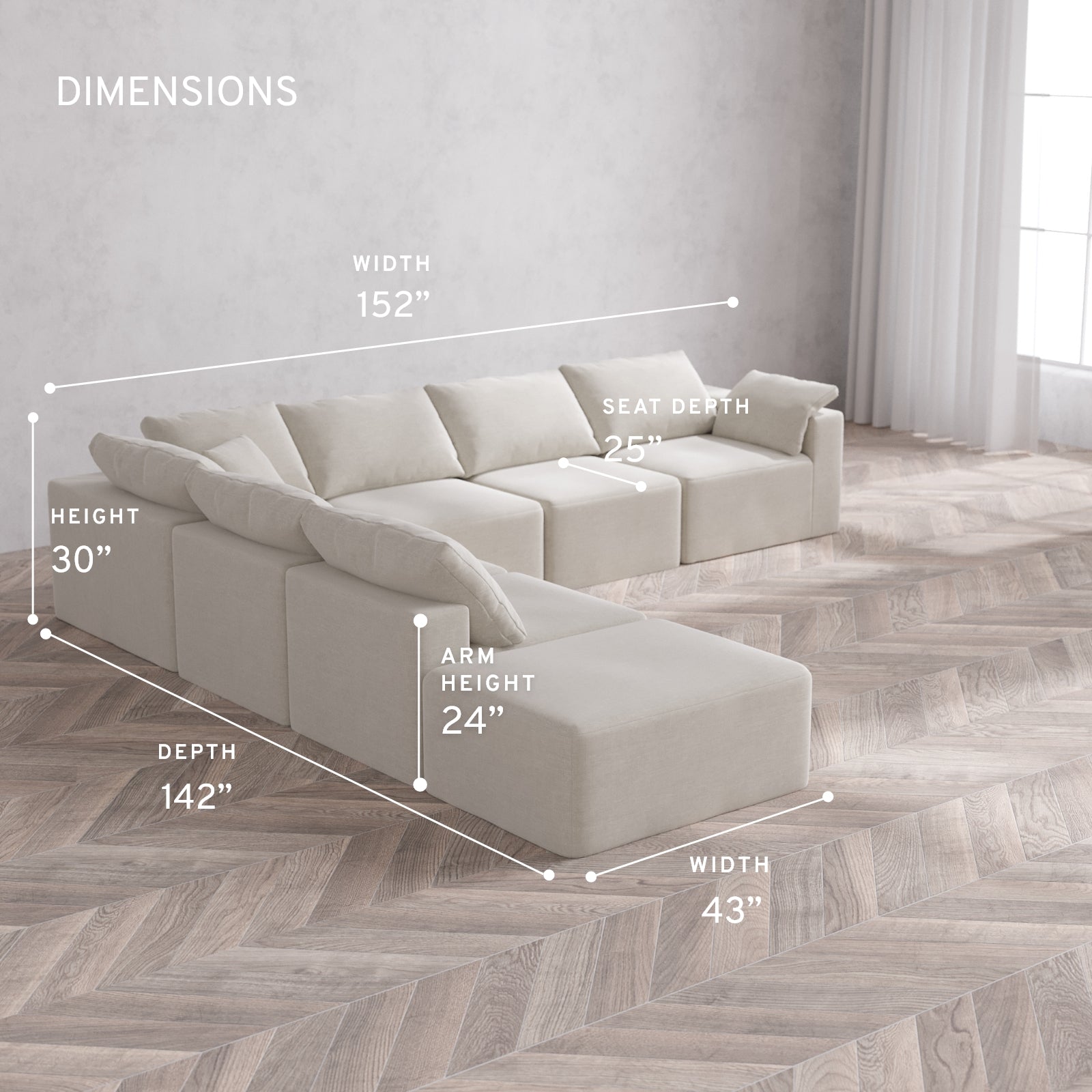 Slipcover Only - Modular Washable 7-Seater Open End Corner Sectional Cloud Sofa in Cashew | Right-Facing Arm