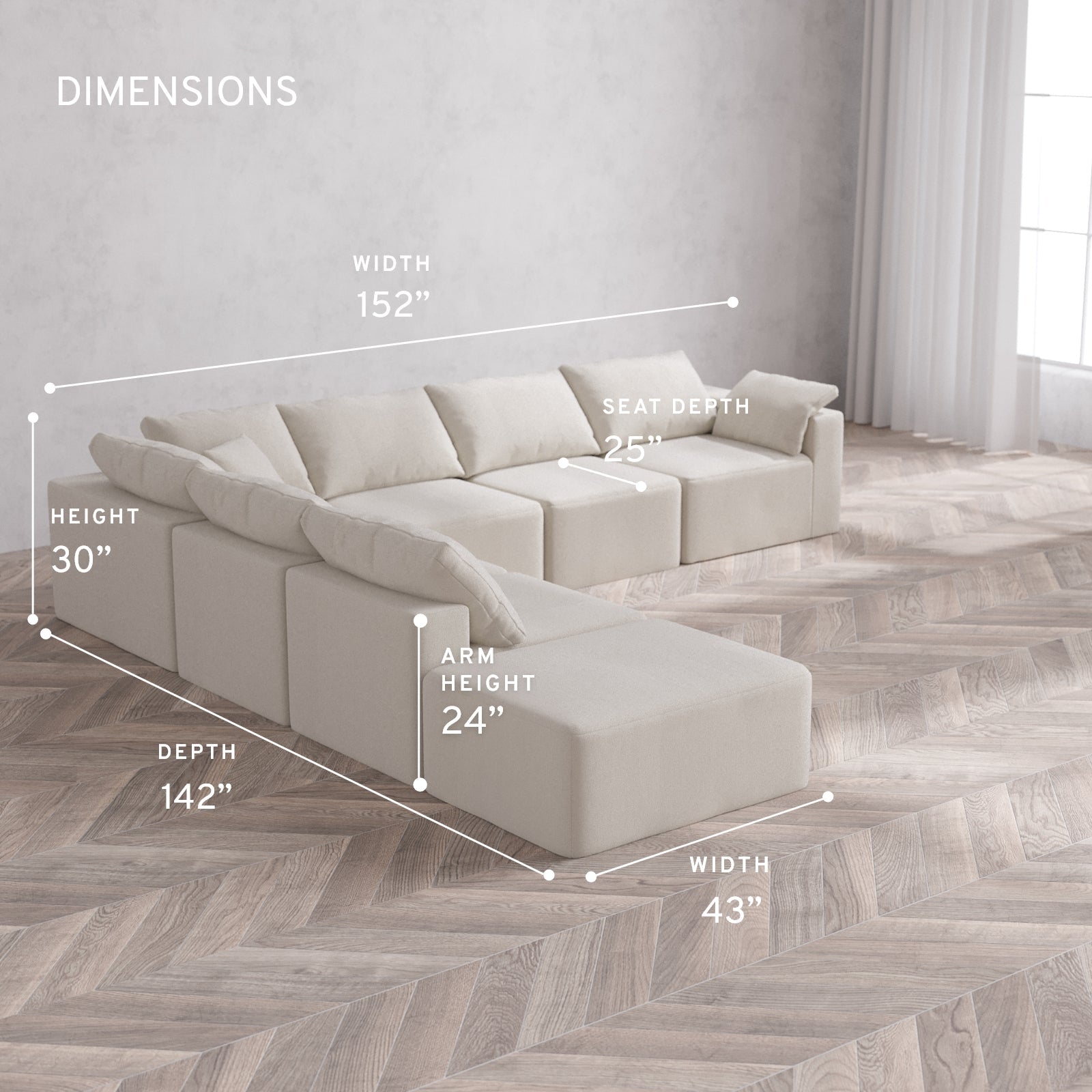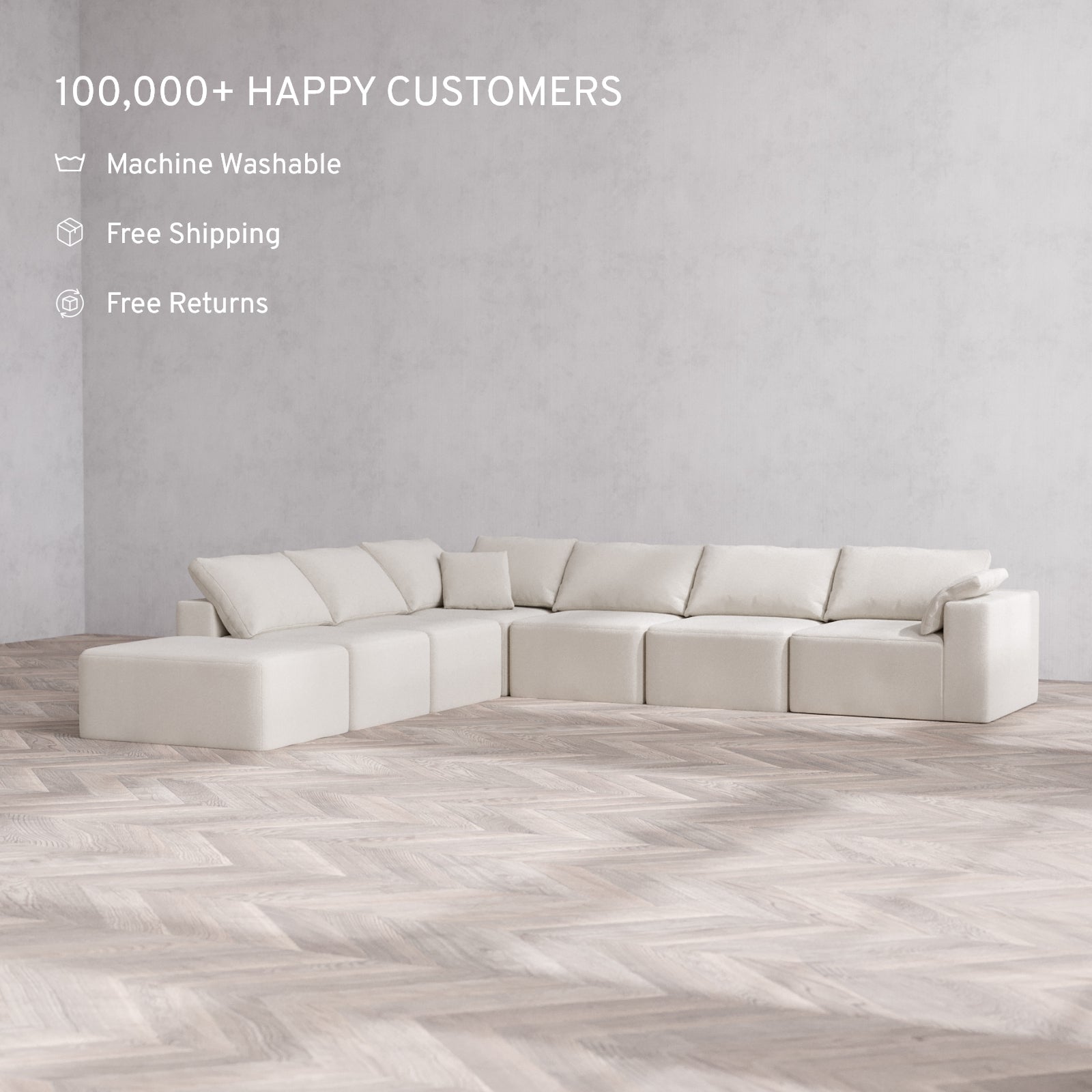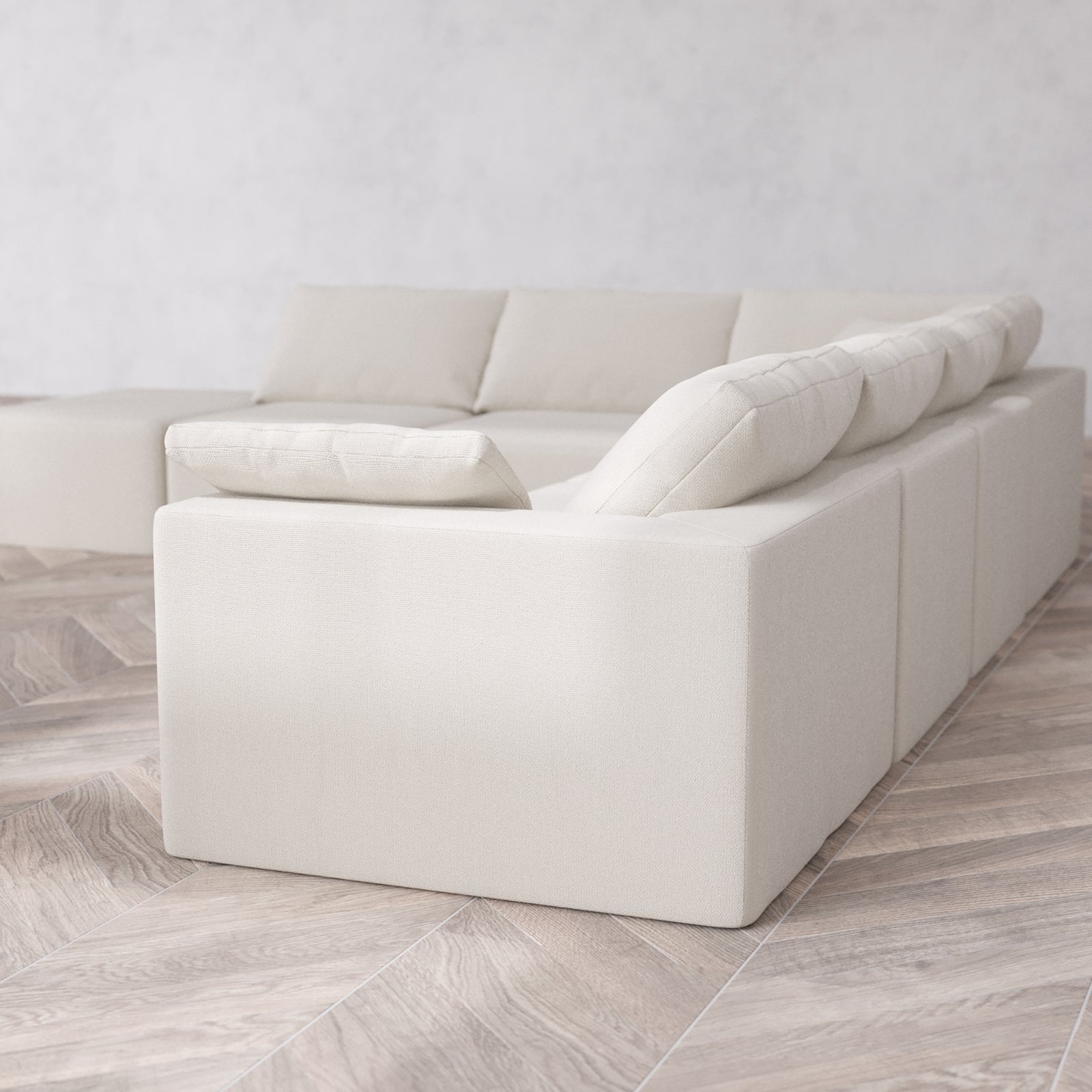 Slipcover Only - Modular Washable 7-Seater Open End Corner Sectional Cloud Sofa in Pearl | Right-Facing Arm