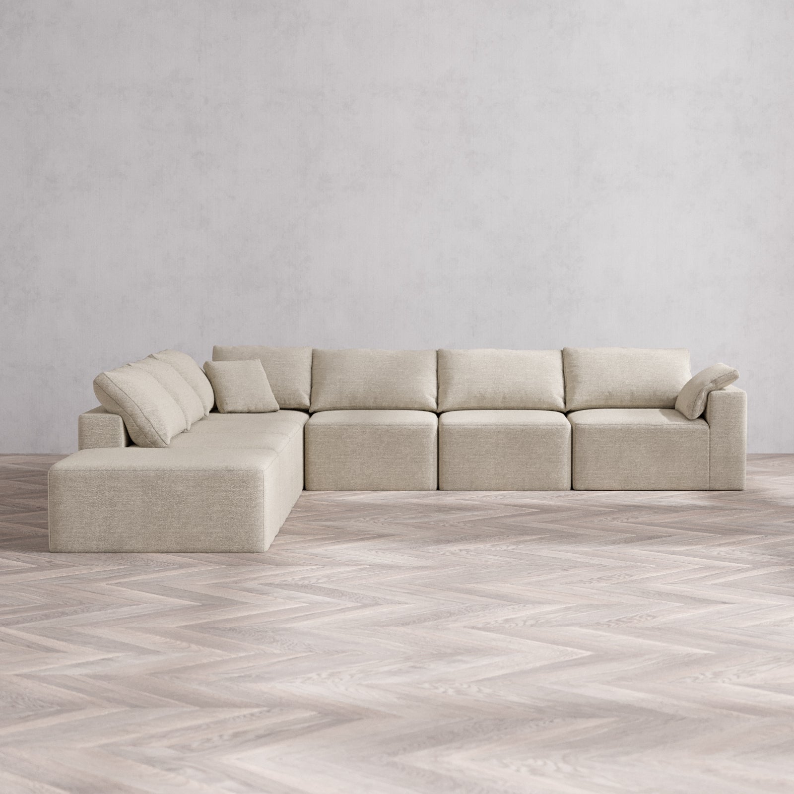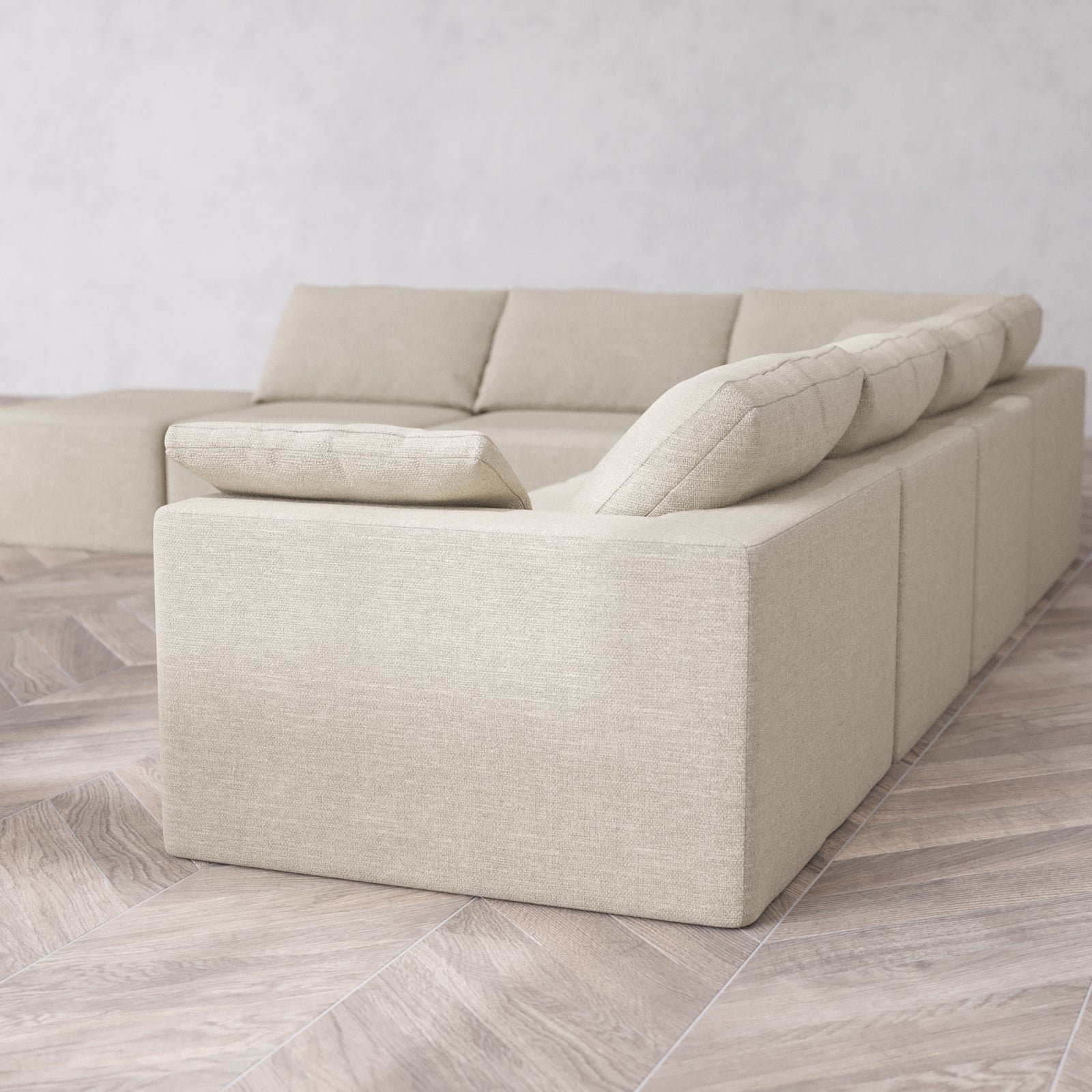 Slipcover Only - Modular Washable 7-Seater Open End Corner Sectional Cloud Sofa in Sandstone | Right-Facing Arm