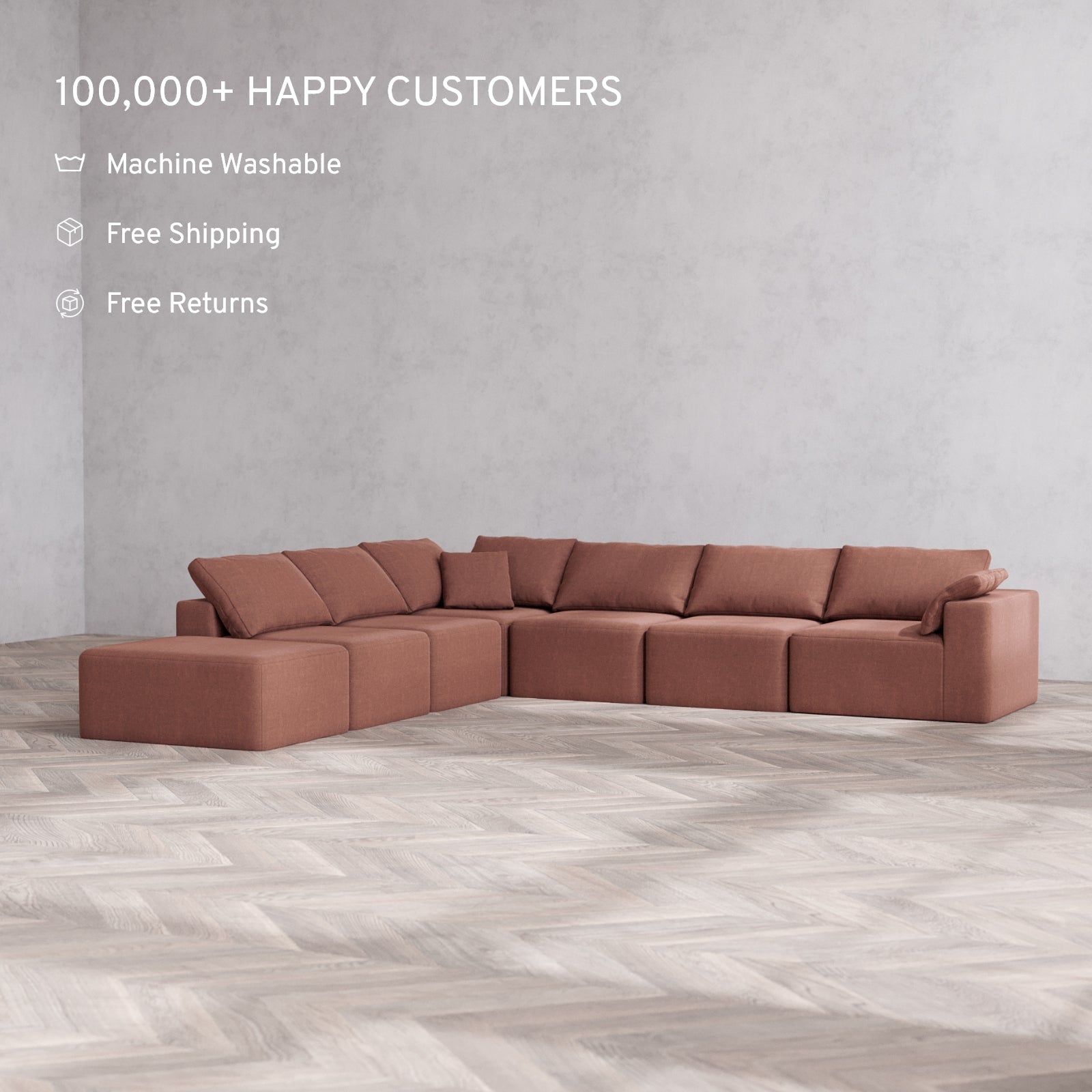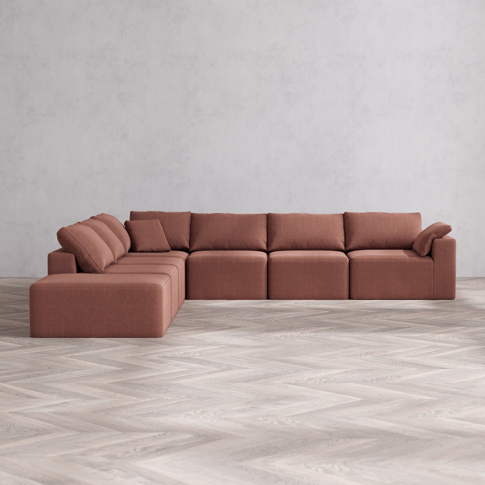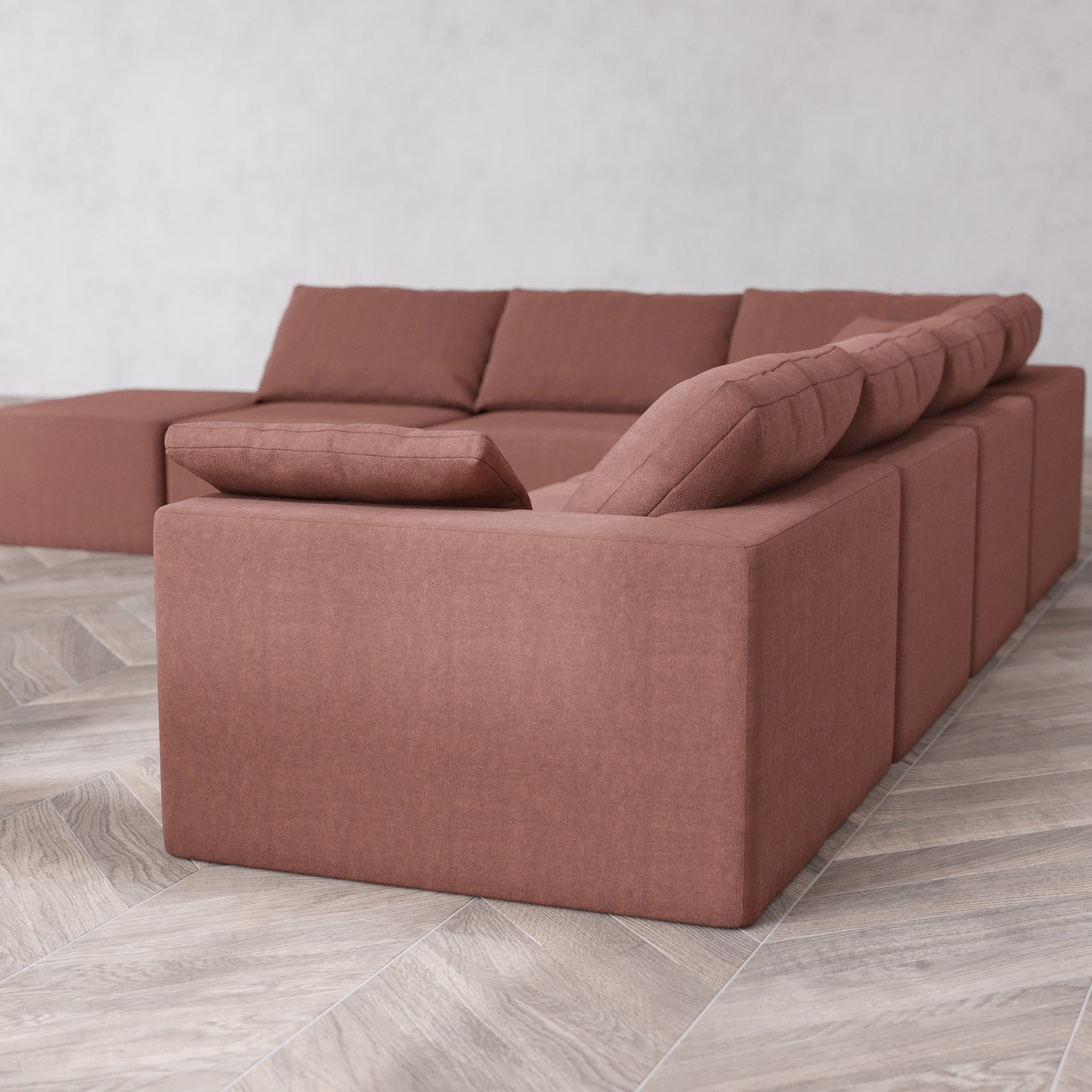 Slipcover Only - Modular Washable 7-Seater Open End Corner Sectional Cloud Sofa in Sumac | Right-Facing Arm