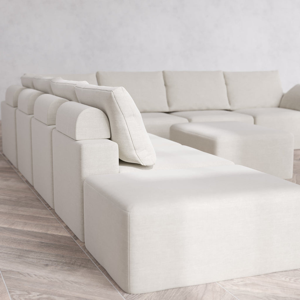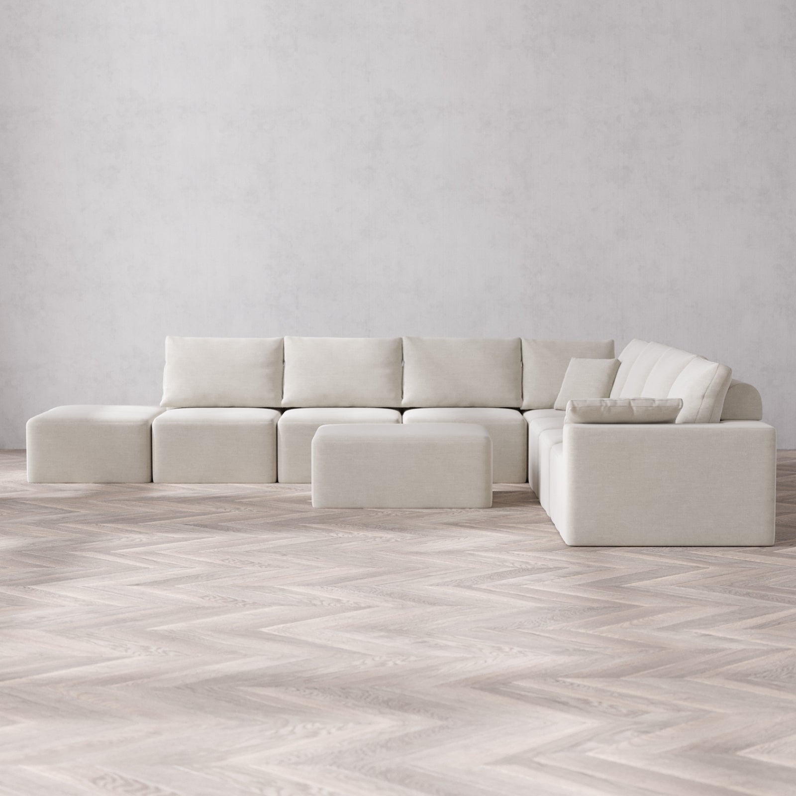 Slipcover Only - Modular Washable 8-Seater Open End Corner Sectional + Chaise Ottoman Cloud + Bolster Sofa in Cashew | Right-Facing Arm