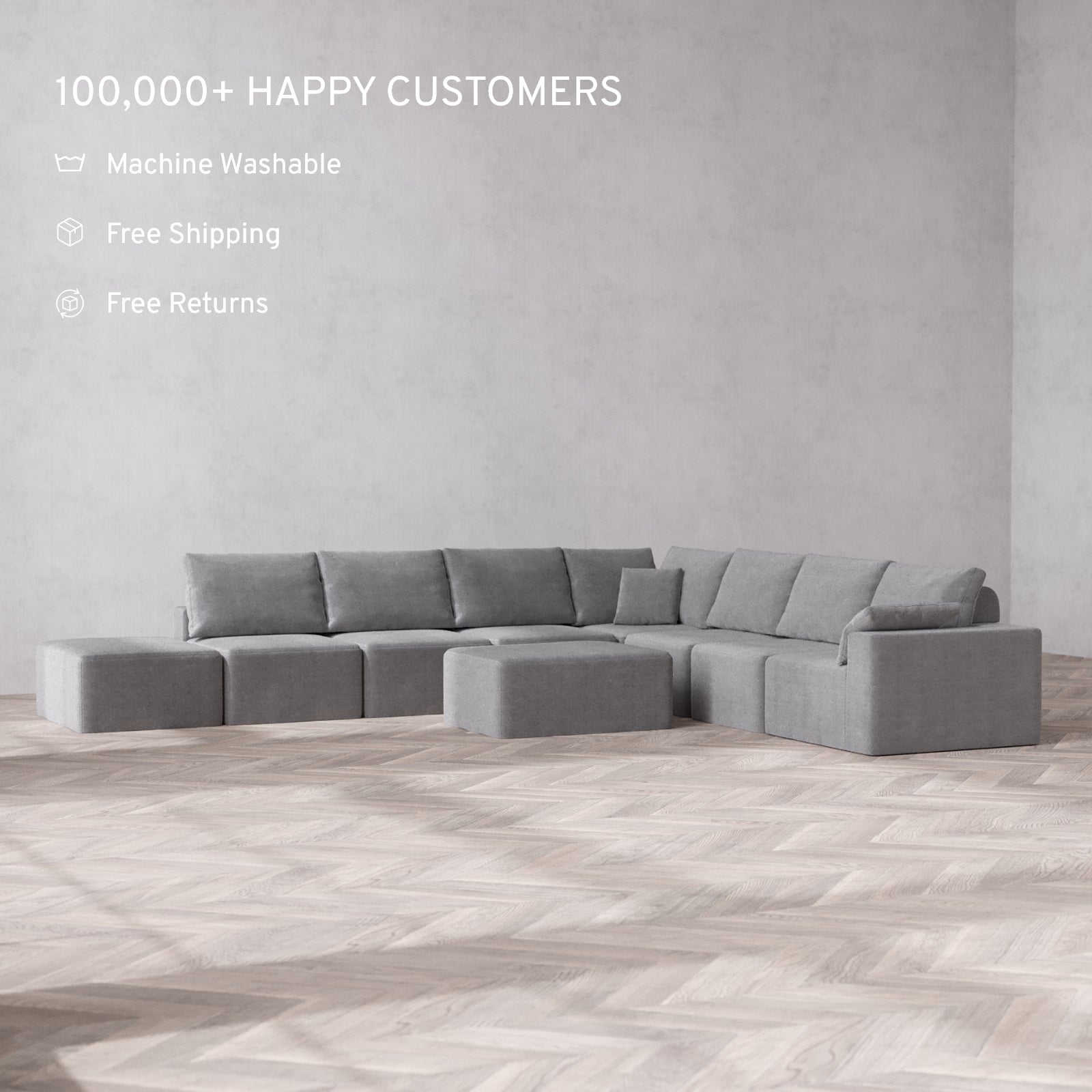 Machine Washable: Every piece of fabric—including the internal quilted duvet—is fully removable and machine washable. It’s the only Cloud-style sofa you can truly deep clean, effortlessly.