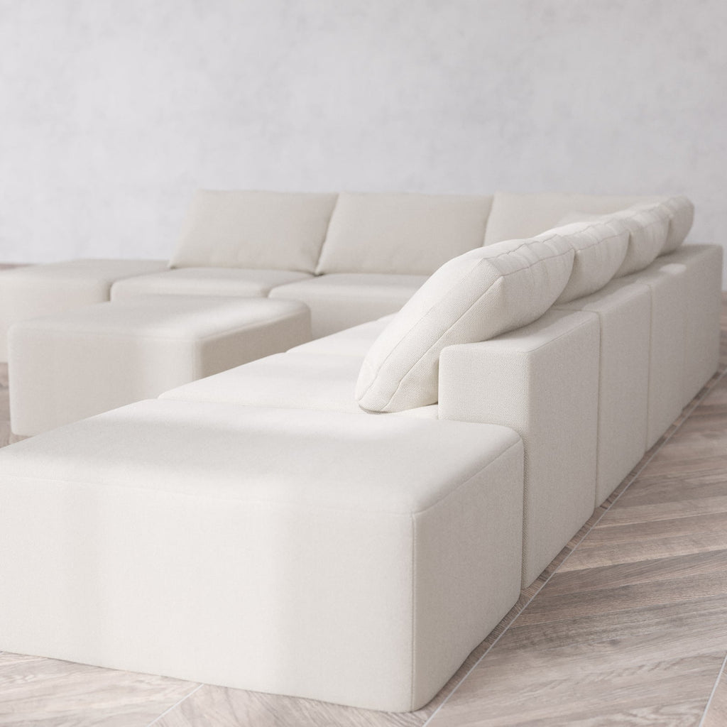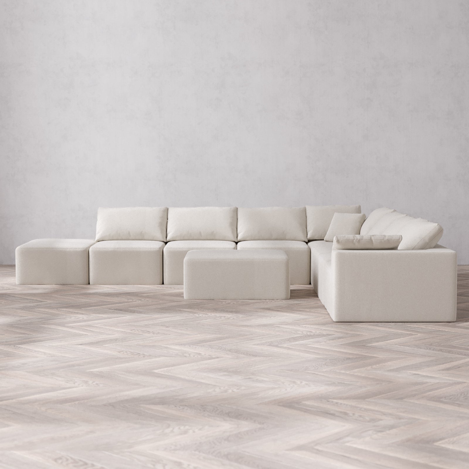 Slipcover Only - Modular Washable 8-Seater Open End Corner Sectional + Chaise Ottoman Cloud Sofa in Pearl | Right-Facing Arm