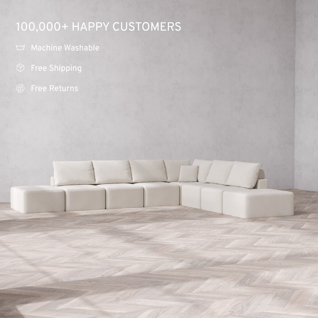 Machine Washable: Every piece of fabric—including the internal quilted duvet—is fully removable and machine washable. It’s the only Cloud-style sofa you can truly deep clean, effortlessly.