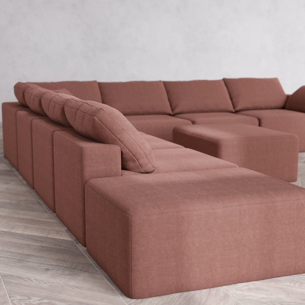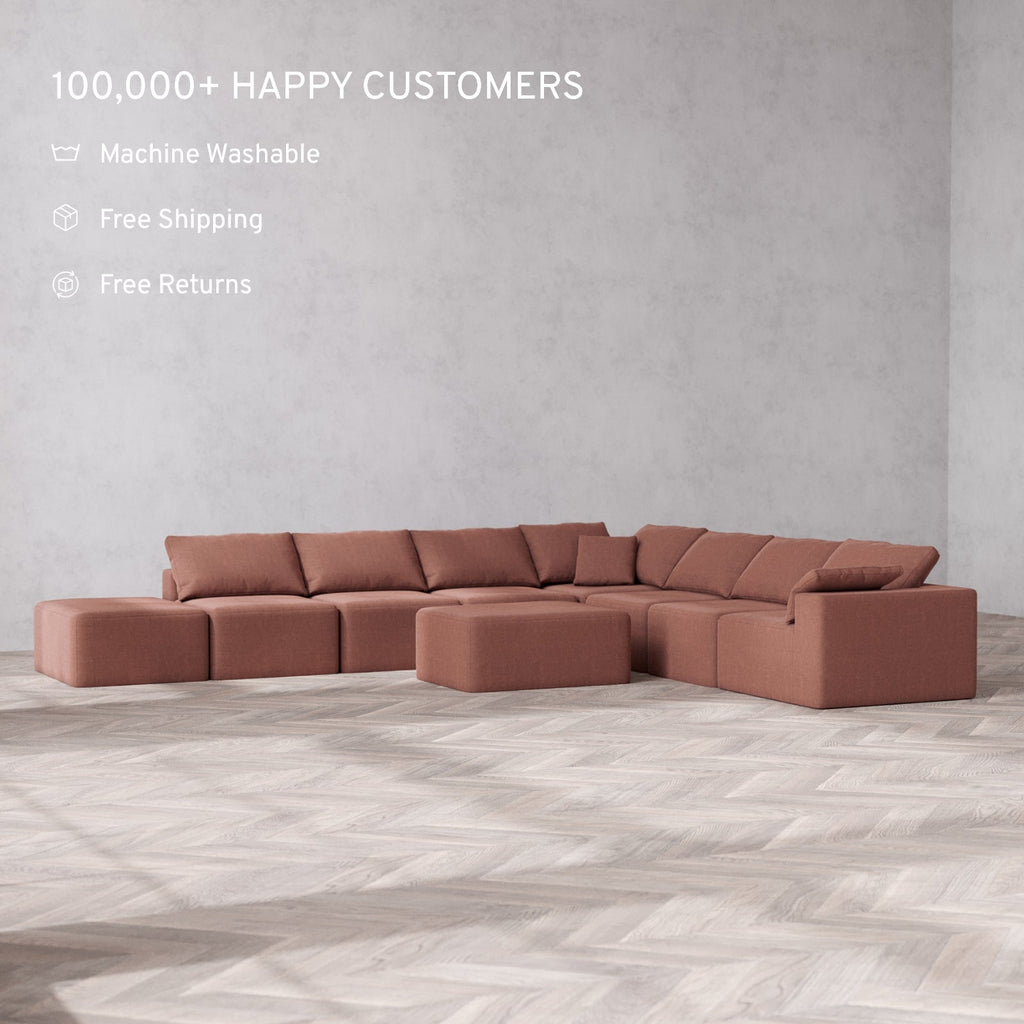Slipcover Only - Modular Washable 8-Seater Open End Corner Sectional + Chaise Ottoman Cloud Sofa in Sumac | Right-Facing Arm